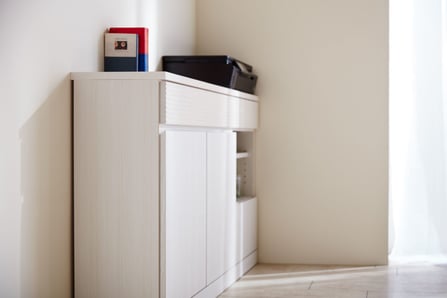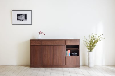 圧迫感を抑えたデザインで、お部屋を広く使える機能的なサイドボードです。
