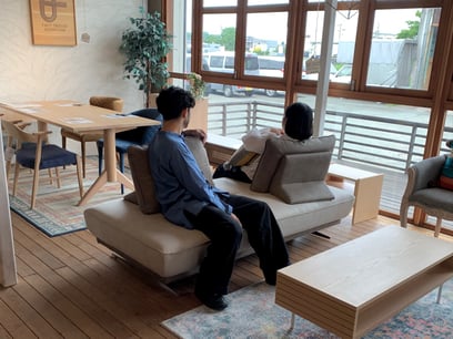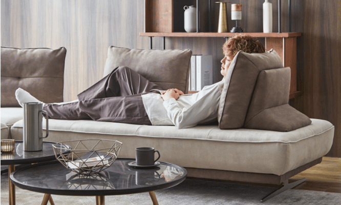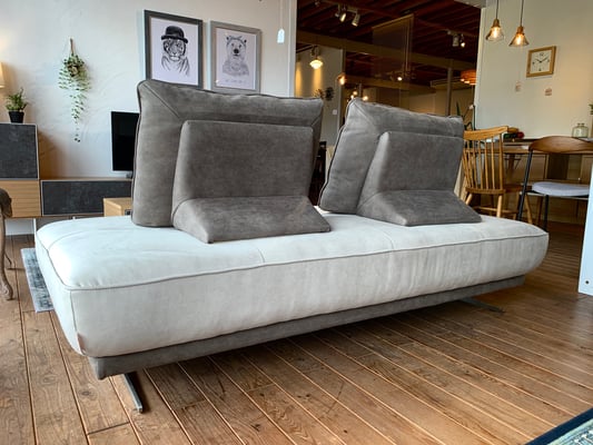 背クッションの配置次第でリビングダイニングを隔てず一体感にある空間作りや、ゴロゴロ1人で贅沢に使うシチュエーションなど、お客様の生活に新たなスタイルをご提案できるオススメのソファです。
